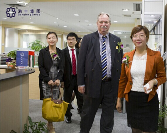2014年5月27日上午,阿聯(lián)酋哈伊馬角政府投資局董事局總經(jīng)理Mr. Peter-Michael Shuster、隨行投資局代表黃冠騰先生、楊子燕女士蒞臨港豐集團(tuán)參觀考察,并與港豐集團(tuán)CEO魏曉嶸就阿聯(lián)酋哈伊馬角離岸公司注冊(cè)、國(guó)際經(jīng)濟(jì)及政策動(dòng)態(tài)等趨勢(shì)話題展開座談。